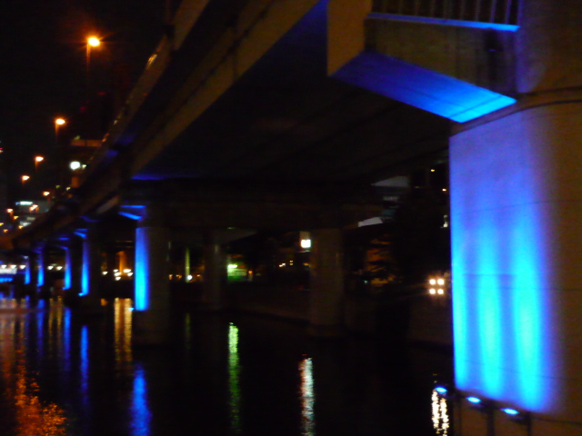 と 思いつつ 阪神高速の柱が青くライトアップ されてるのが目に入り