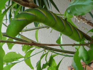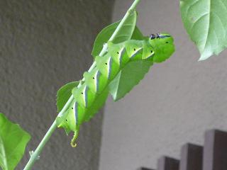 これは自宅の鉢植えのデュランタ(takarazuka)にいる アオムシ? です。