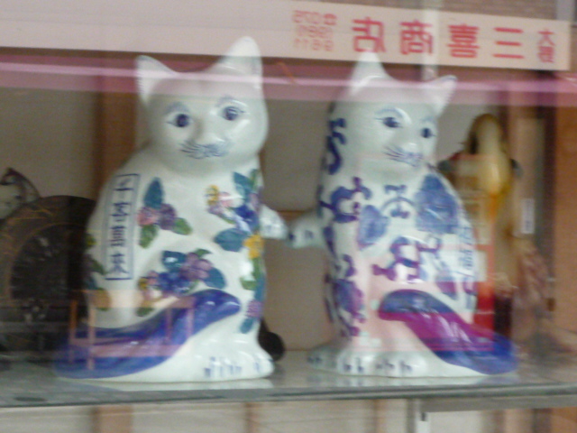 お寿司屋さんのショーウィンドウに置かれた 招き猫