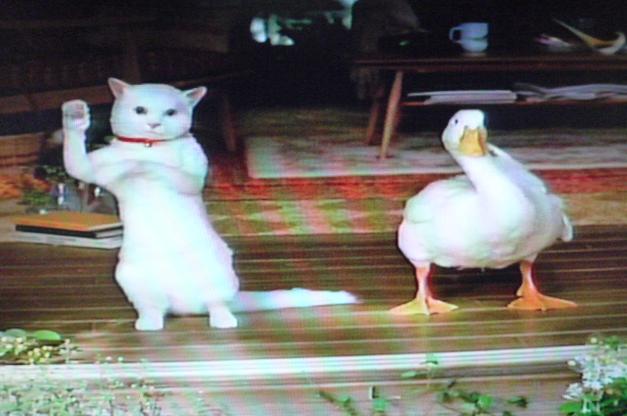 ♪ 猫とアヒルが力を合わせ
