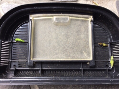 飼育ケースの蓋に 影が三つ