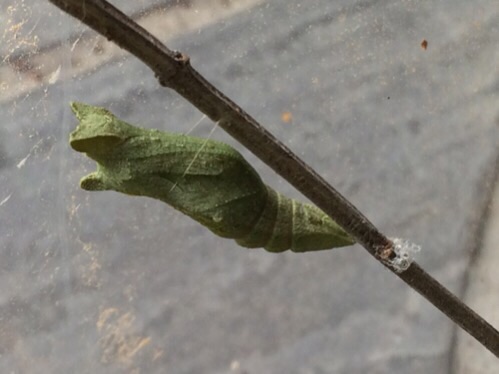 最後の一匹が さなぎになろうとしていました。
