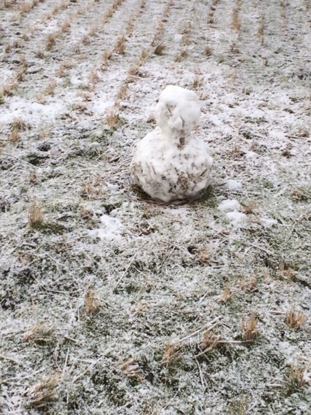 駅近くの わずかに残る田んぼに 雪だるま。。。