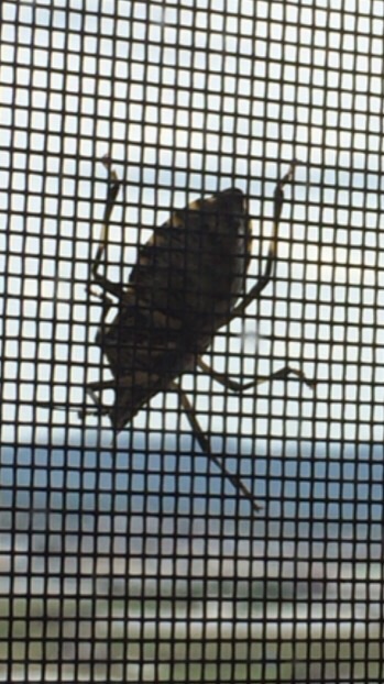病室の網戸に大きなカメムシが停まっていました。