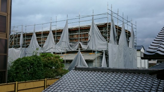 裏の工事現場のシートが