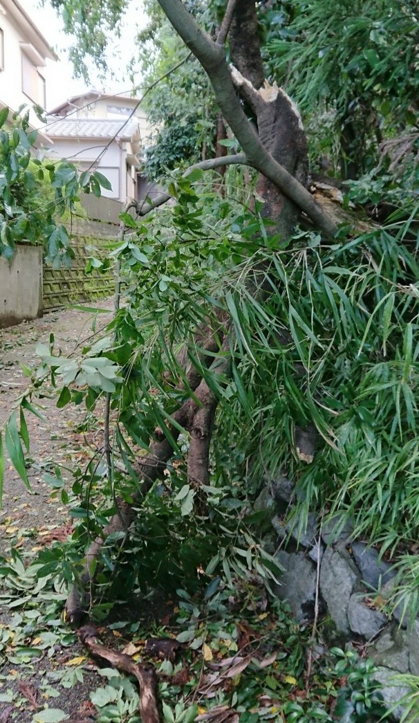 いつもの通勤路にも 木が折れ