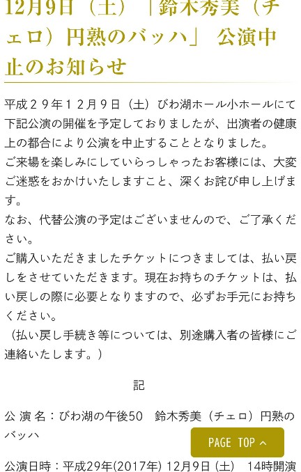 体調不良 で公演中止 とのこと