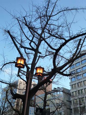 朝の御堂筋 心斎橋の銀杏 葉が落ちで素っ裸になっています。