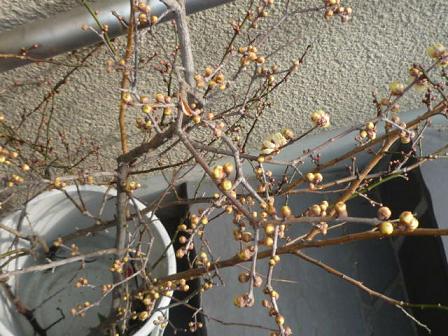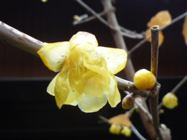 でも、庭にある右下の蝋梅は咲いてます。