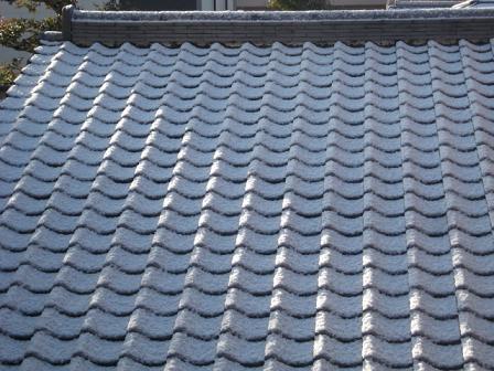 朝の日差しが お隣さんの屋根(右下)に当たって