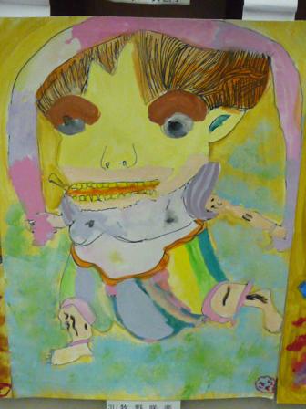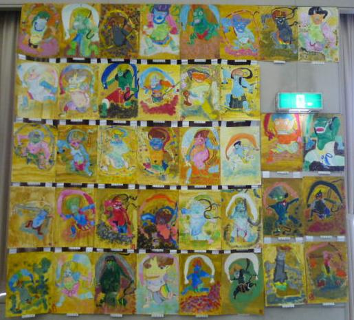先日 アフタースクールにお邪魔した小学校の作品展 に行きました。 岡ちゃんのイラストに なっちゃんとリコちゃんが着色してくれた案内を持って! 作品展は毎年のことながら大盛況 素敵な作品に思わず たくさん画像を撮ってしまいました。 みんないいんですが、中でもこの 「風神雷神」 もう 可愛すぎて やばいです(^^) こんな伸び伸び描かしてもらえて 素晴らしい展示までしてもらえて この学校の児童は ほんとに幸せですね。 ついつい長居してしまい とっても幸せな気持ちになりました。 外に出ると 小雨がぱらついてましたが 気持ちは ホット に アトリエに戻りました。