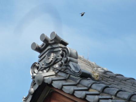 木曜日にカルチャーのデッサンで来られてるSさん 瓦コレクター らしく 先日楽しいお話を聞かせていただきました。 そういえば、最近いい瓦 見かけなくなりました。 樟葉までの通勤路で いつも見ているのは 左は神社の社務所 右は曹同宗の尼寺 のそれぞれテッペンです。 そんなに古くないようですが、堂々たる造りです。 上から どんな光景を見て来たんでしょうね。