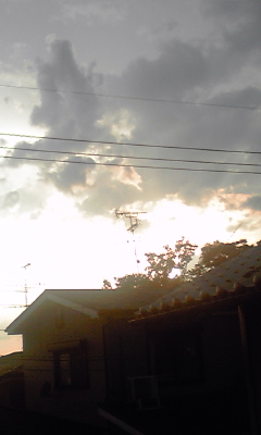 夕方から暗くなり ガラガラ ガッシャーン!!! 雷をともなった すさまじい雨が降りました。 でも思ったより 短い時間で とっとと過ぎ去り また、夕日が照り付けてました。 雨の後は 涼しい? と思ってたんですが・・・・・・・・ 今日で連日の記録更新とか この暑さ そろそろ 収まると期待したいな。 風は少し吹いてます~