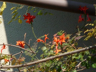 葉は色着いて落葉してるんですが花は元気です。
