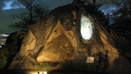 校門までの 桜並木や ルルドの立派なレプリカは