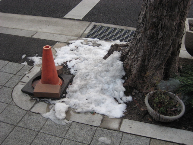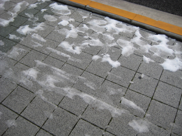 歩道には 雪が カチンコチン に固まってありました。