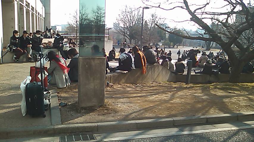 2人から届いた画像です 駅前で 人形が覗いてたり 武蔵美では 音を立てるイスが あったりしたようですが 昨日と今日は 憧れの多摩美 兎に角 受験生が多く 校舎は広かったそうです。 明日1日はさんで 学科と面接 明日は秋葉原?とか言ってました・・・ どうなります ことやら(>。<)