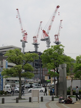 出て すぐに目に入ってきたのは 工事中の巨大な重機