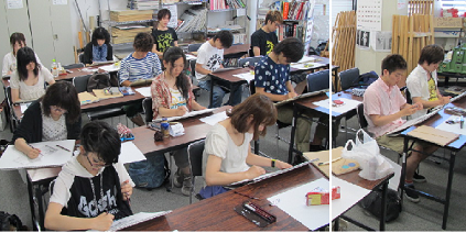 こんな狭い教室で描いてるんですよ!