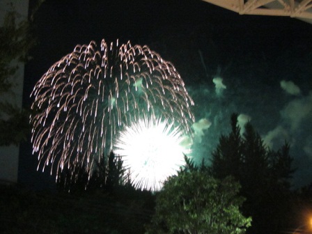 夕方から 梅田に出ました。 浴衣を着た女の子がチラホラ ああ・・・・ 今日は 淀川の花火? 友人と話し込んでても 音が気になり 8時過ぎ すでに終盤でしたが 爆音が近くなった ホテルのあたりまで行き しばし 眺めていました。 みごとなクライマックスに 後ろにいた外人さんが拍手喝采 ブラボー と叫んでました(^^) 美しい一瞬の造形に 魅了され 少しだけでしたが 見れて良かったです。 帰りの環状線は 通勤ラッシュ以上の人で 地獄 でしたが(>_<)