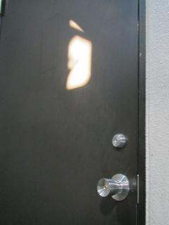 内扉に 屋上へ上がる踊り場の小さな窓から