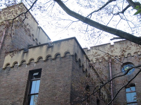 外観に西日が当たり始め でも どっしりと 重厚に存在しています。