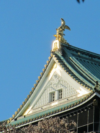 天守閣の しゃちほこに 夕日が当たり始め お日様を見送って