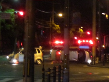 交差点で 一台は横転してました。。。