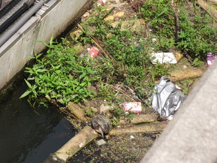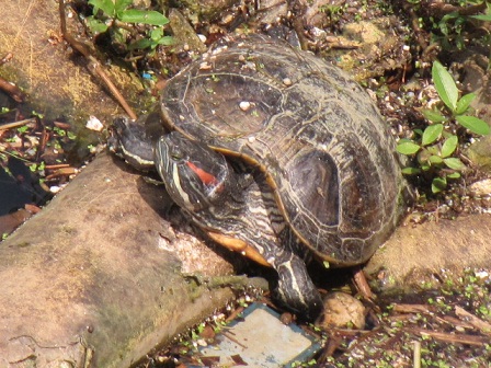 デジカメをアップにしてみたら アカミミ亀でした。