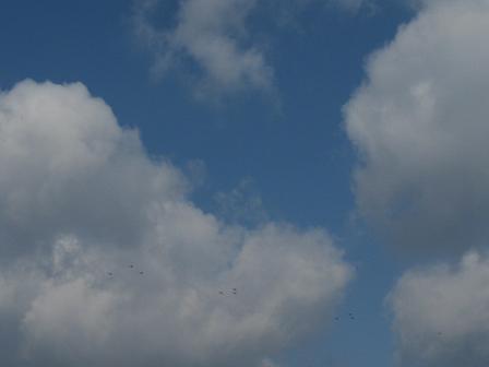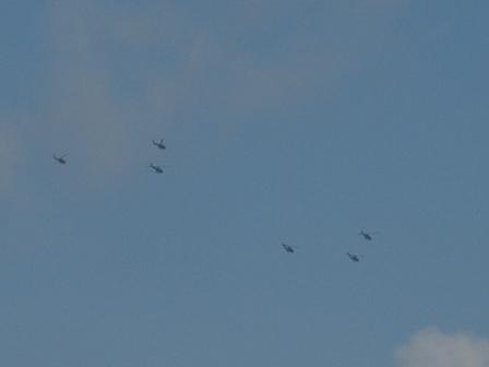 見上げると 9機のヘリコプター