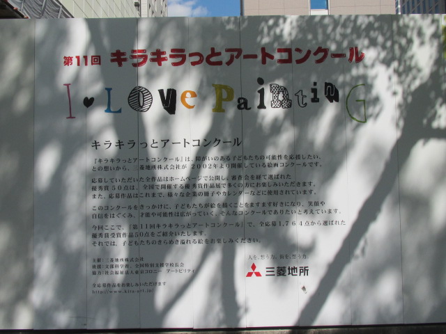 淀屋橋に近い工事中のビルのフェンスに絵が飾ってあります。