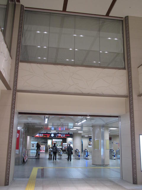 京阪樟葉駅 改札口の正面 工事のフェンスが取り払われました。 すこん として気持ちいい空間が現れました。 2階までの吹き抜けも作られてて 装飾は 阪急百貨店風? 男子高校生二人が写メしてました(^^) 今まで通れたところにフェンスがかけられ モール街もテナントの移動が続いています。 工事はまだまだ続きそうが どうするつもりなんでしょう。。。。。