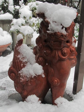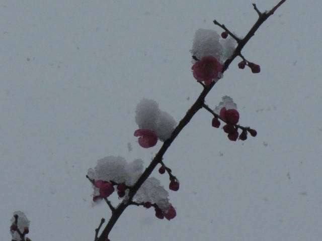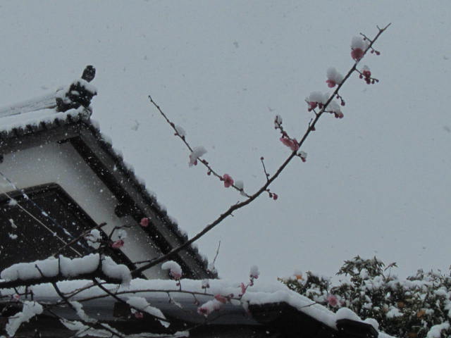 鬼瓦も 梅の花にも 積もっていましたが