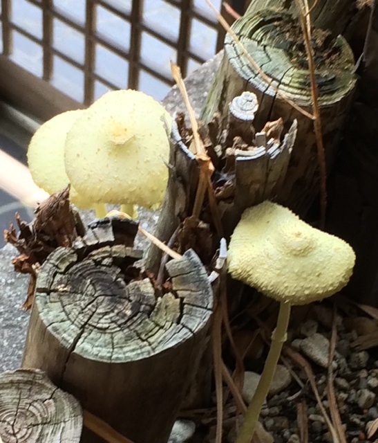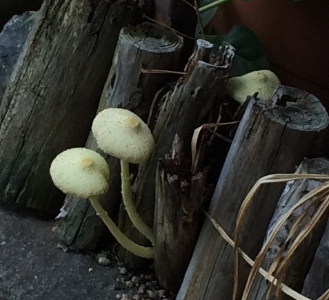 土留に並べた丸太が腐って 生えてきたようです^^