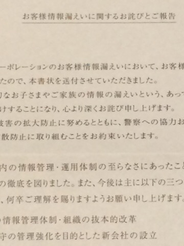 僕のところにも、ベネッセから通知がきました。