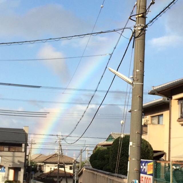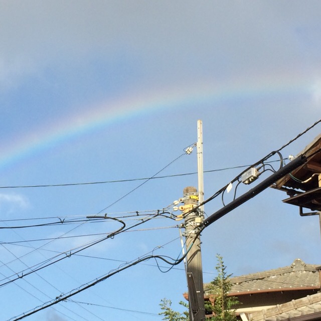 見上げると大きな虹がかかっていました(^^)