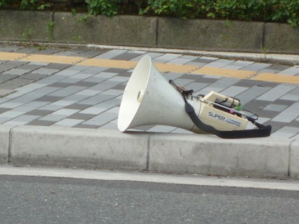 マイクが置かれて 大音量で 品のない歌が流れていました。